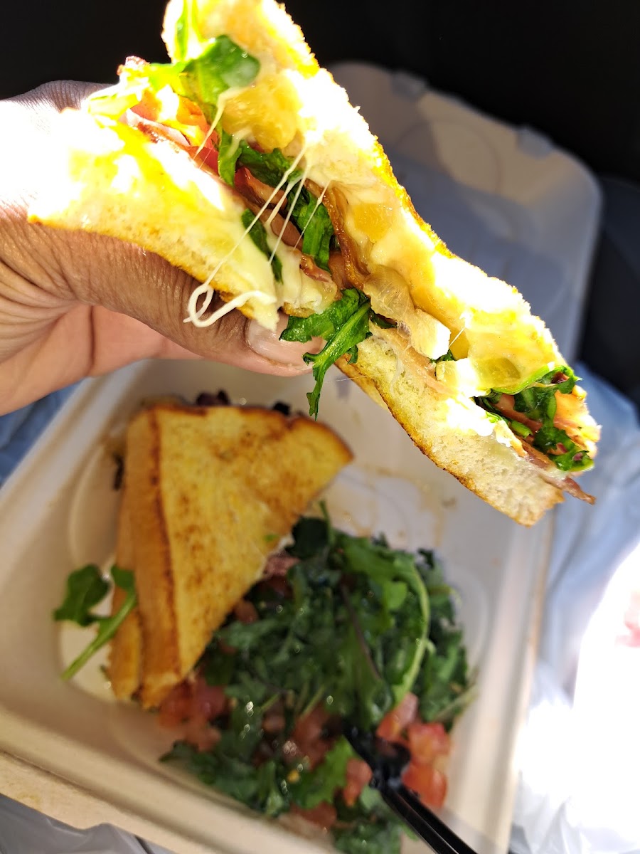 I had a doctor's appointment at Ohio State Outpatient Care Dublin, located at 6700 University Boulevard Dublin, OH 43016 OMG! Y'all I tried to ignore the aroma of something incredible to eat. I knew that I had to be in/out and hold my breath, if necessary. I definitely wasn't going to look in the direction of the smell. I did it! I went directly to my doctor's appointment and back out the door without a problem. BUT... I turned around and went back inside and directly to the place where the food was. That heaven-sent aroma. I've never been there. I didn't know what to order. I just asked, "what is THIS smell?" "What did you just make? I want THAT!" I was told it was a grilled cheese made with Swiss cheese, caramelized onions and bacon with a little arugula on sourdough bread. It'll have a side salad with it as well. Ordinarily, I'm very frugal. I MUST know the cost of everything, before I think it's too much and not worth it. But not today! Cost wasn't a factor. In fact, I didn't even ask for the price. I just said, YES PLEASE! OMG! This was a delight. Everyone must go get this dish. It was delicious! It came from BistrOH! Again, it's located inside the Ohio State Outpatient Care Dublin.